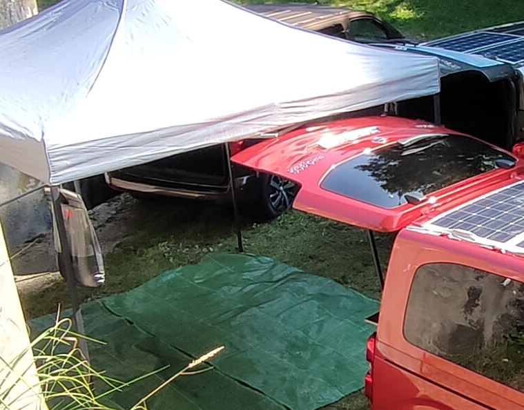 Multifunkční zadní stan k 5. výklopným dveřím k rozšíření „obytného“ prostoru krytého pevnou střechou (150×150 cm) nebo jako dílčí zástěna proti pohledům, dešti či sněhu. Dalšími možnostmi využití jsou funkce krycí plachty vozu proti přehřívání sluncem (světlá odrazová strana) nebo 3 samostatně nebo spojeně použitelné díly coby stínící prvky mimo auto (mezi stromy, stromy a auto atp.) Rychlá instalace (1-2 min), prostorová nenáročnost.