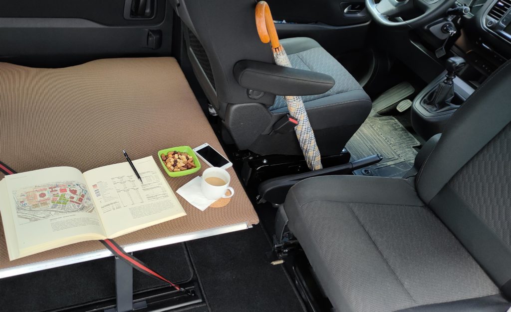 Skládací stolek pro mobilní kancelář – možnost a podmínky jeho samostatného nákupu k nižším verzím výbav výrobcem již potvrzeny. Nákup coby náhradní díl.